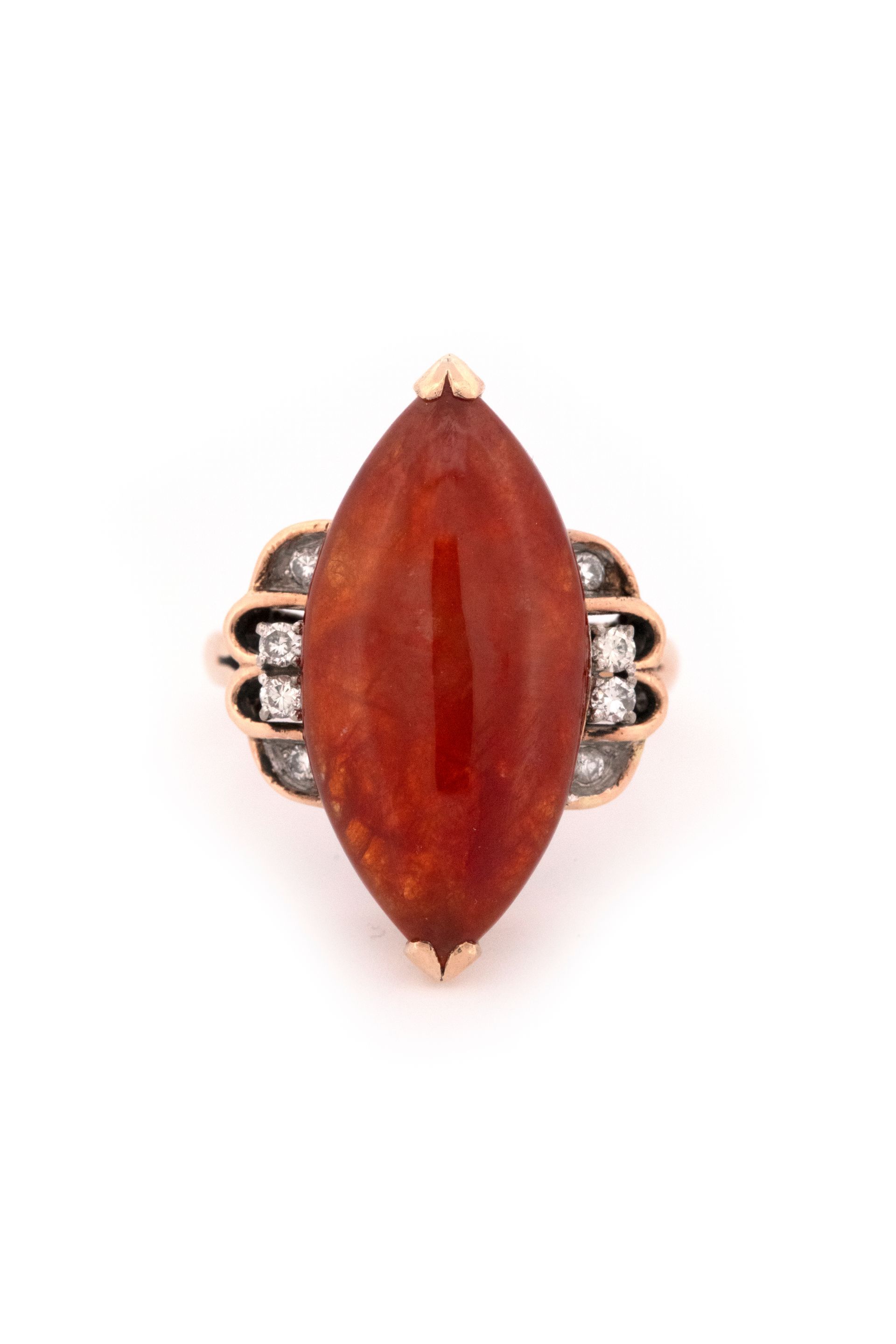 14k Yellow Gold Red Jadeite & Diamond Ring